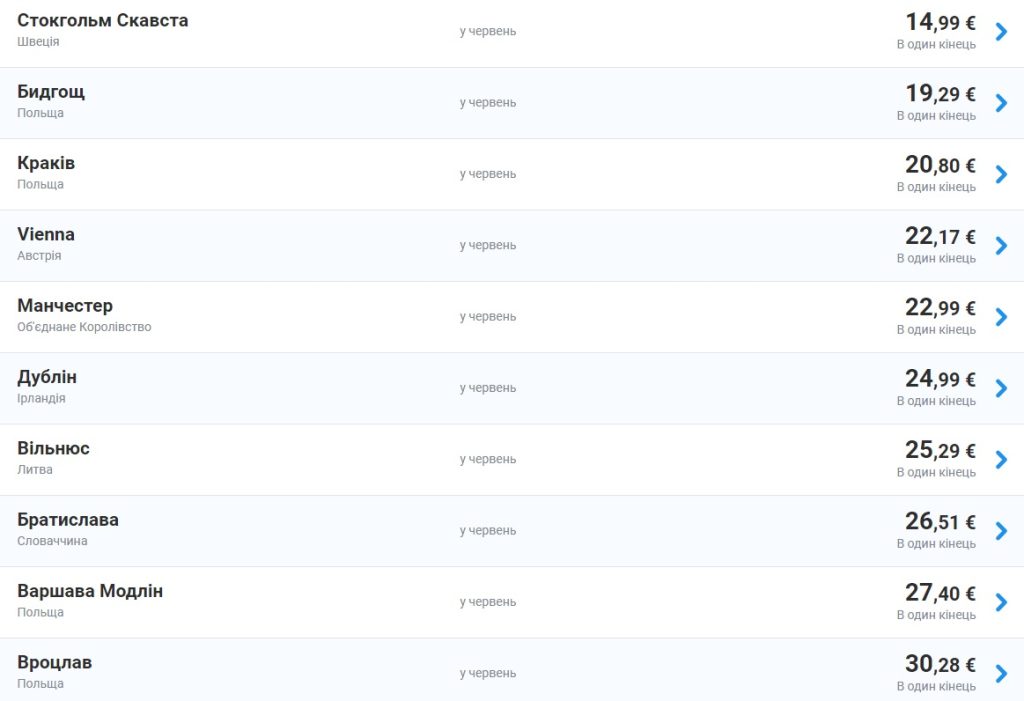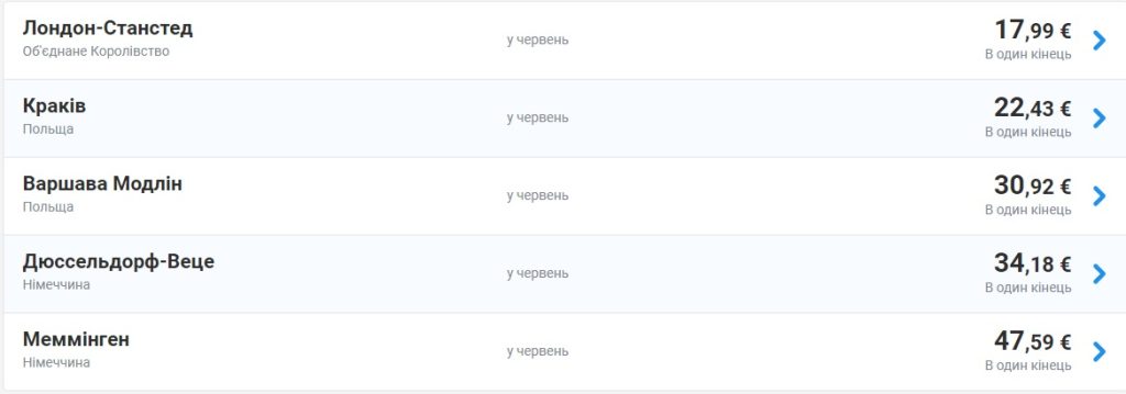 Лоукостер Ryanair пропонує вигідні ціни для подорожей з України до Європи у червні 2019.