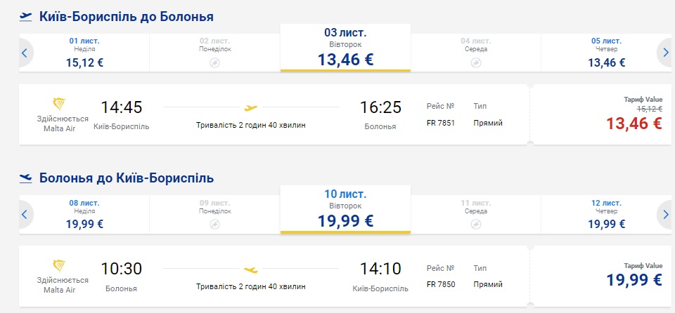 Київ-Болонья-Київ (03.11.2020 – 10.11.2020) – €34