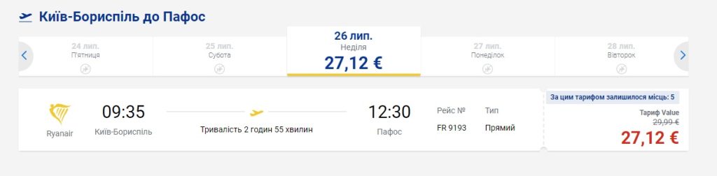 Київ-Пафос-Київ (26.07.2020) – €27