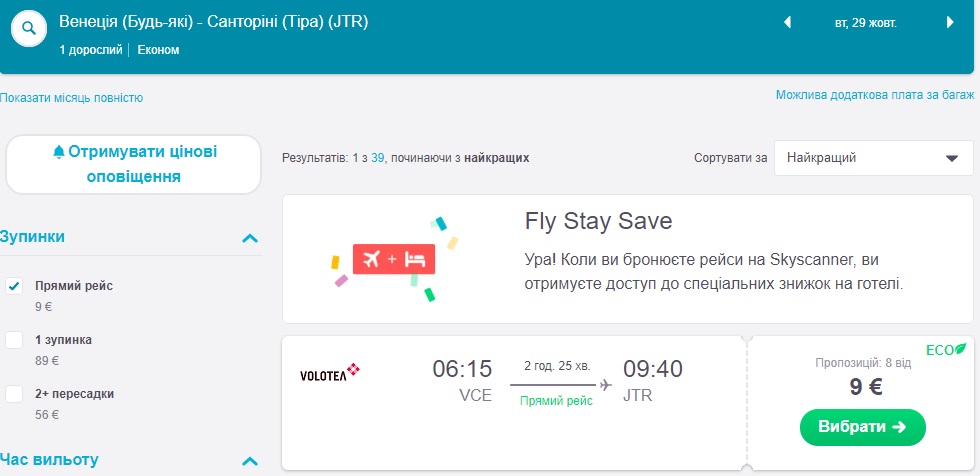 Венеція-Санторіні (29.10.2019) – €9