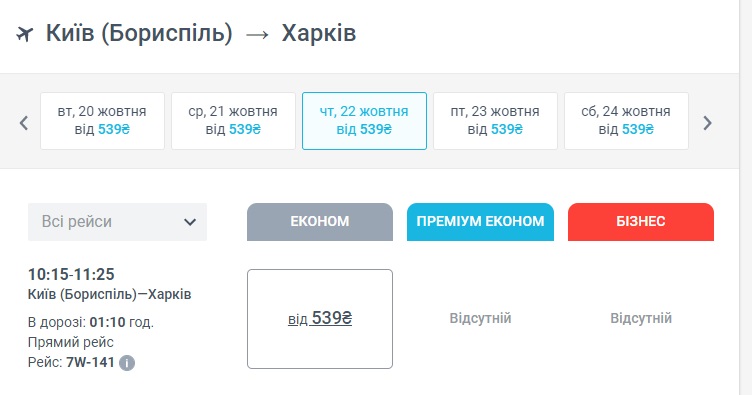 Київ-Харків (22.10.2020) – ₴539