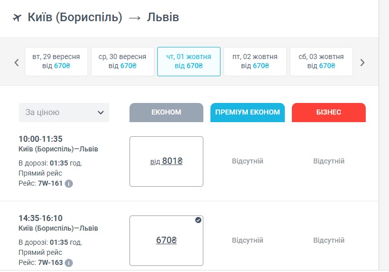 Київ-Львів-Київ (01.10.2020) – ₴670