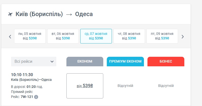 Київ-Одеса (07.10.2020) – ₴539