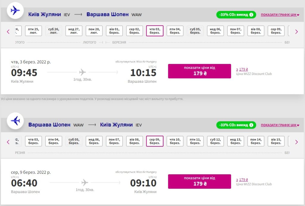Київ – Варшава – Київ (03.03.2022 – 09.03.2022) – €11