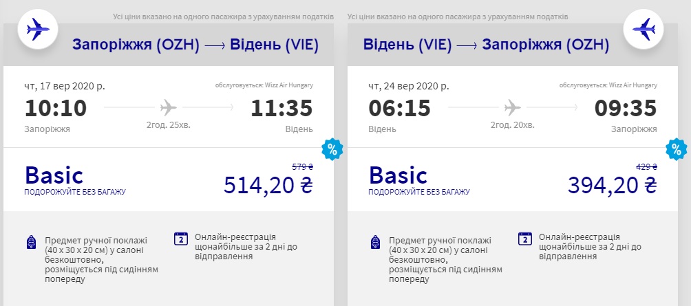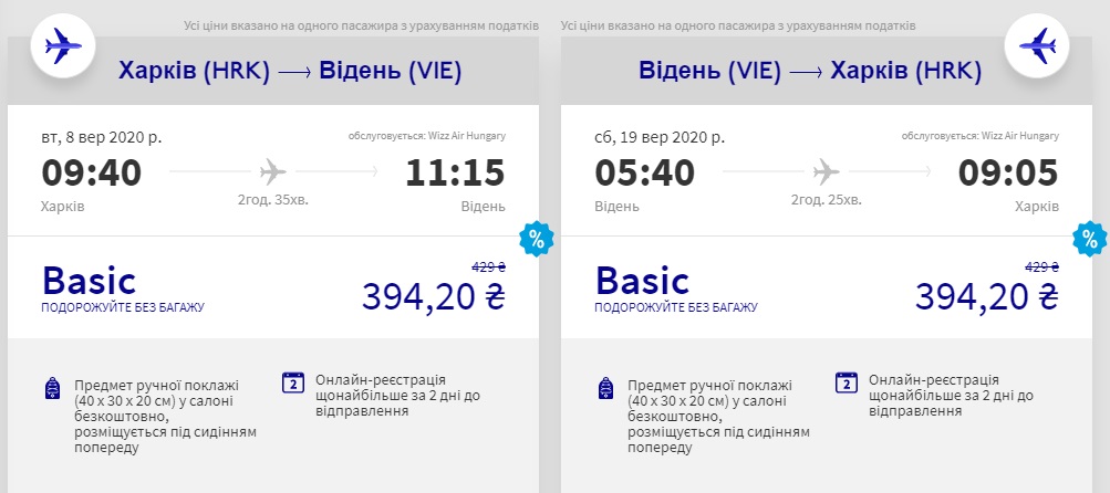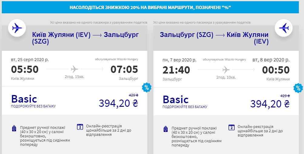 Авіакомпанія Wizz Air сьогодні пропонує знижку 20% на всі авіарейси до та з Австрії.
