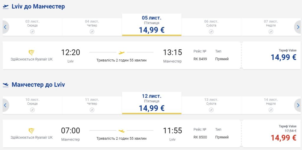 Нові рейси до Великобританії Ryanair планує виконувати з 5 листопада 2021. Частота польотів – двічі на тиждень: щопонеділка та щопятниці.