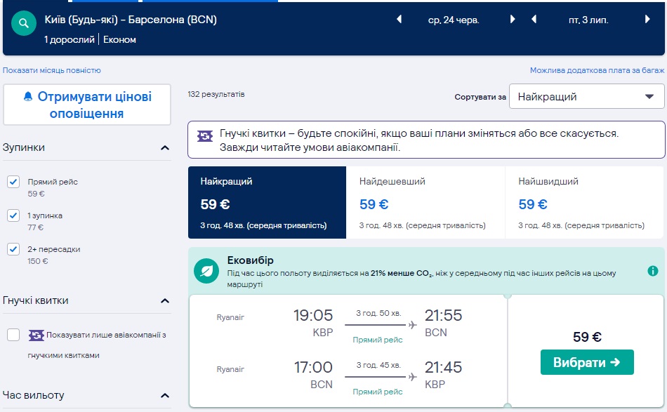 Вартість квитків Київ-Барселона – від €59 в обидві сторони.