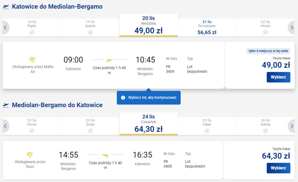 Катовіце – Мілан – Катовіце (20.11.2022 – 24.11.2022) – €24