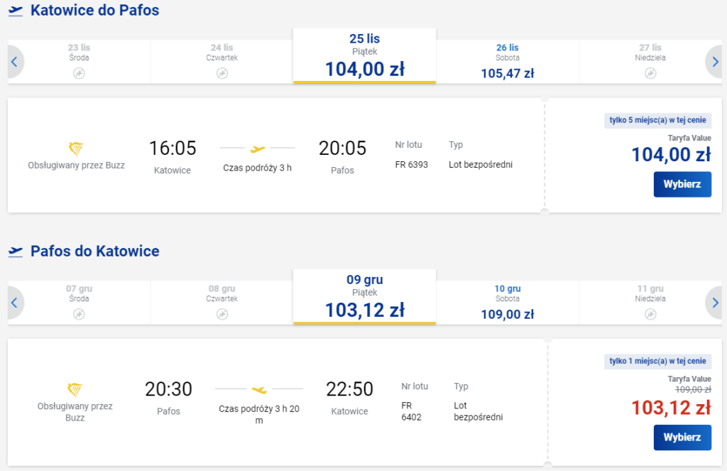 Катовіце – Пафос – Катовіце (25.11.2022 – 09.12.2022) – €43