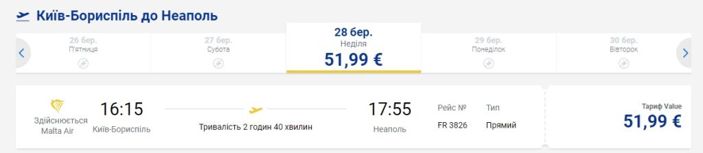 Ірландський лоукост Ryanair запустить нові авіарейси з Києва у Неаполь навесні 2021.