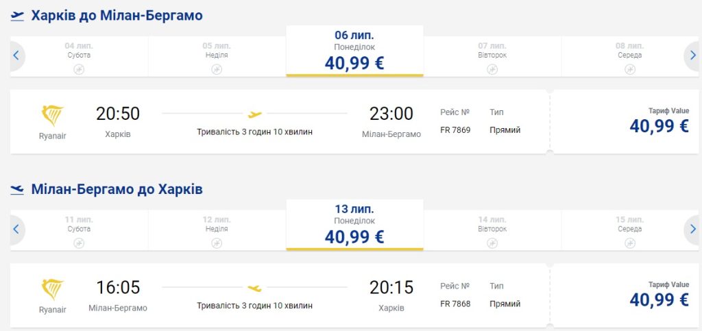 Харків-Мілан-Харків (06.07.2020 – 13.07.2020) – €82