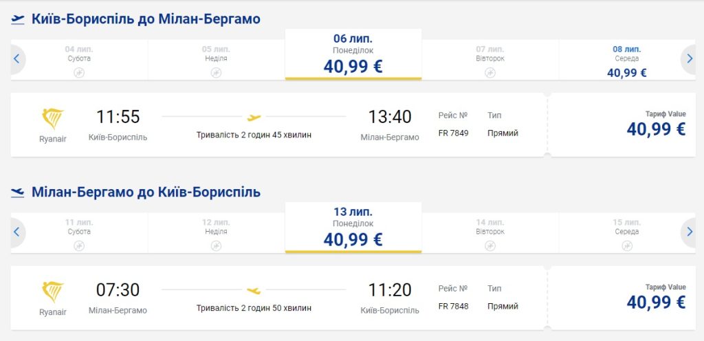 Київ-Мілан-Київ (06.07.2020 – 13.07.2020) – €82