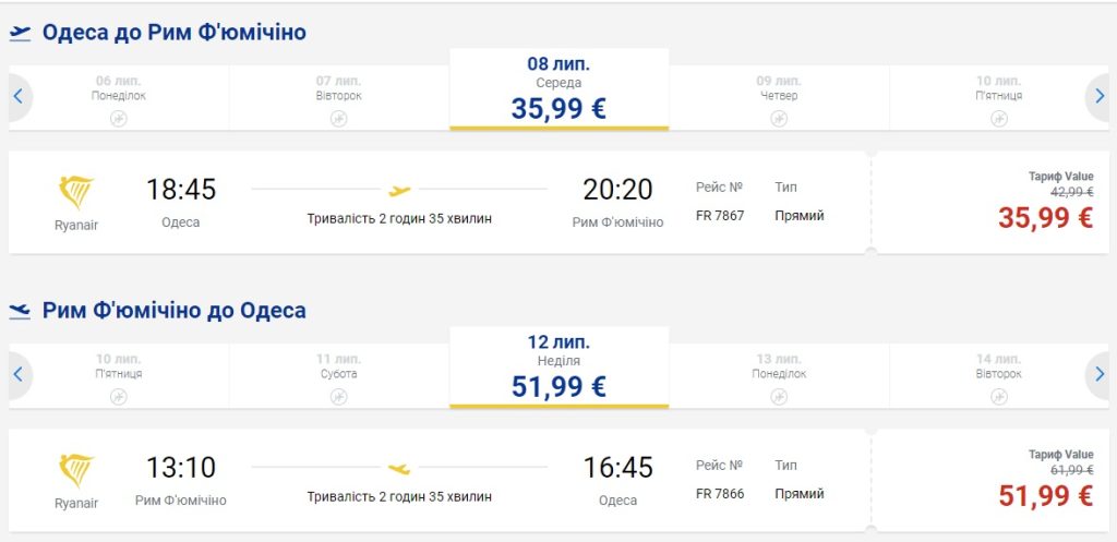 Одеса-Рим-Одеса (08.07.2020 – 12.07.2020) – €88