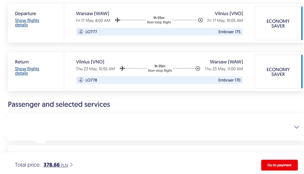 Варшава – Вільнюс – Варшава (17.05.2024 – 23.05.2024) – €87