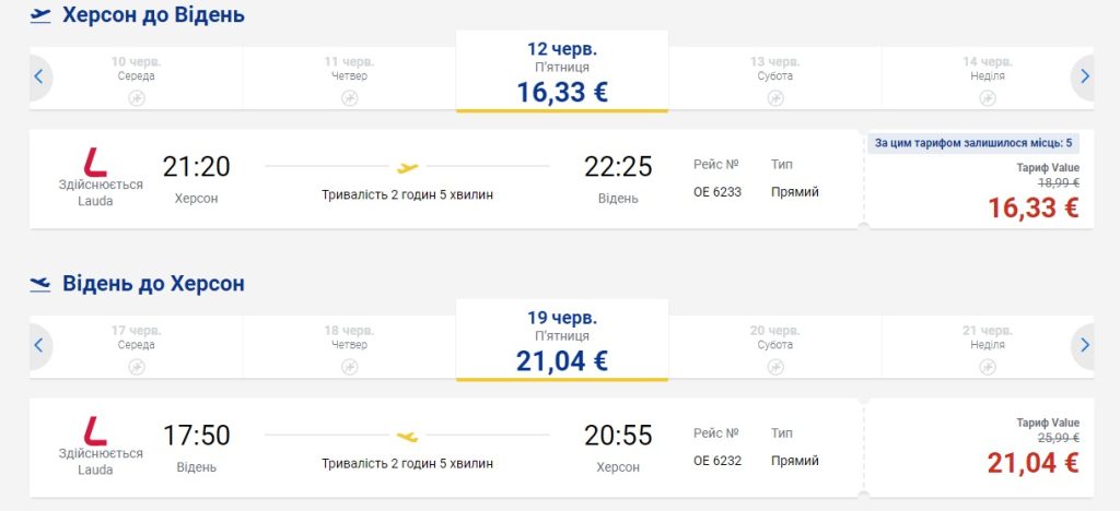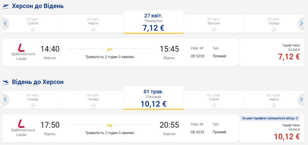 Авіакомпанія Laudamotion продовжує дивувати хорошими цінами на нові рейси з Херсона у Відень та пропонує – від €7 в один бік та €17 туди-назад.