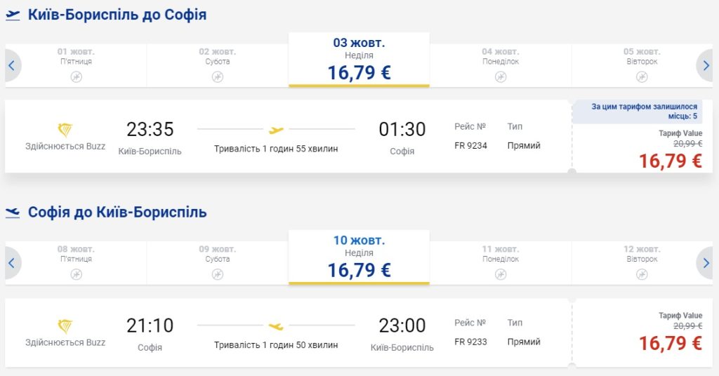 Київ – Софія – Київ (03.10.2021 – 10.10.2021) – €33