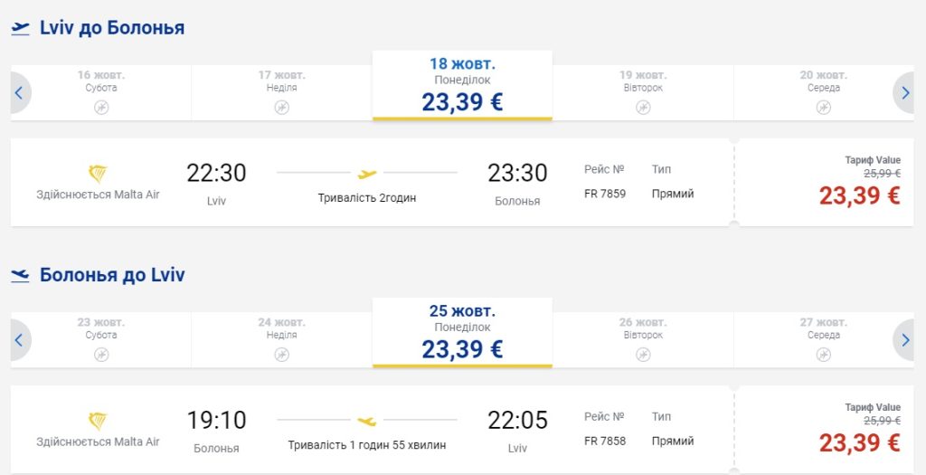 Львів – Болонья – Львів (18.10.2021 – 25.10.2021) – €47