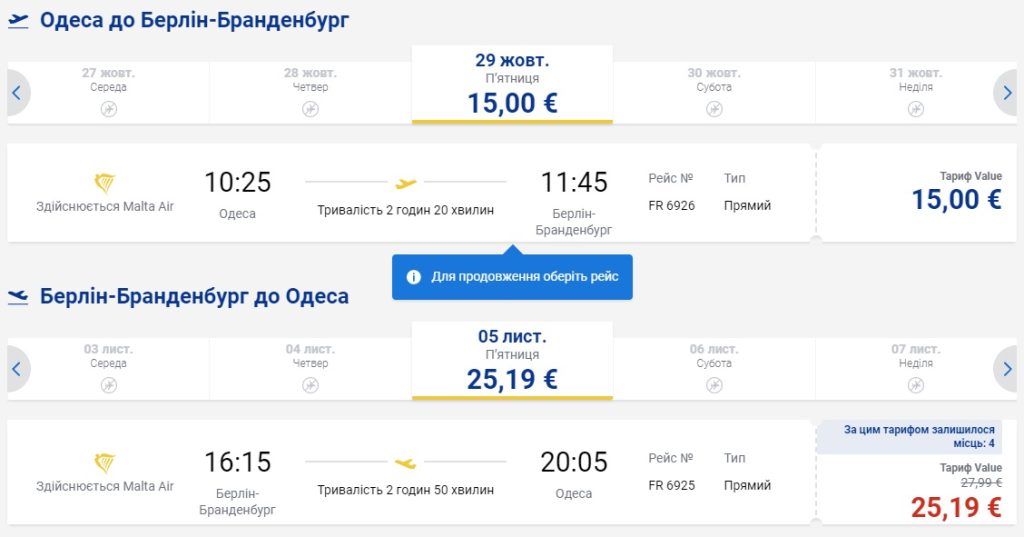 В ціні за даними тарифами – тільки ручна поклажа. Замовляти квитки потрібно на сайті Ryanair.