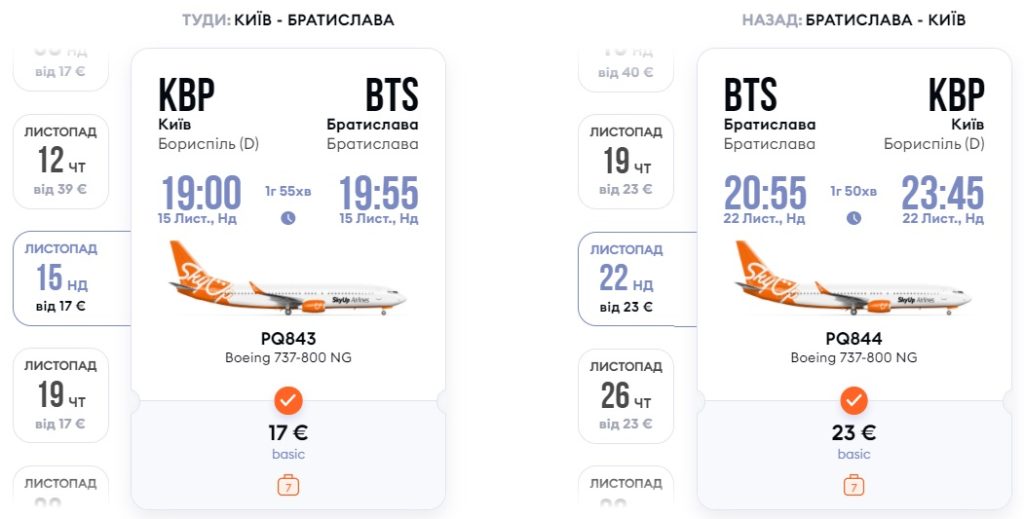 Київ-Братислава-Київ (15.11.2020 – 22.11.2020) – €40