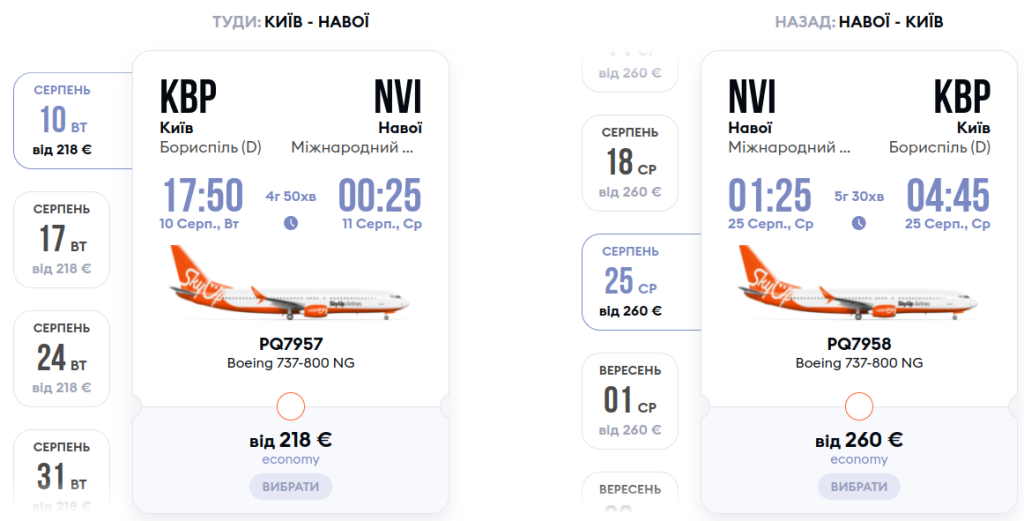 Прямі рейси Київ – Навої запустять з 10 серпня 2021.