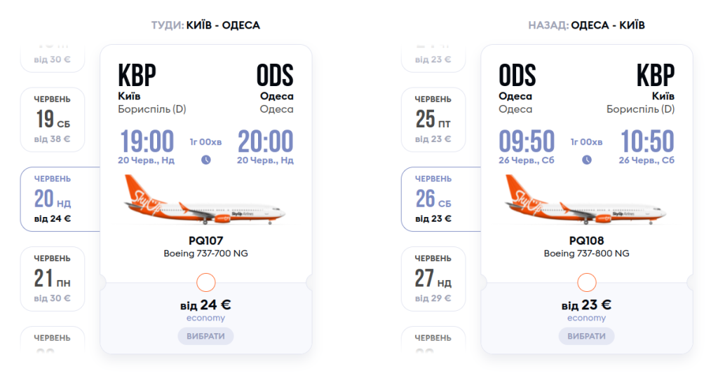 Одеса: з 28 травня щовівторка, щочетверга, щоп’ятниці та щонеділі.