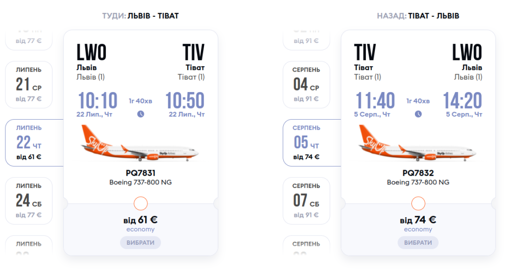 Львів – Тиват – Львів (22.07.2021 – 05.08.2021) – €135