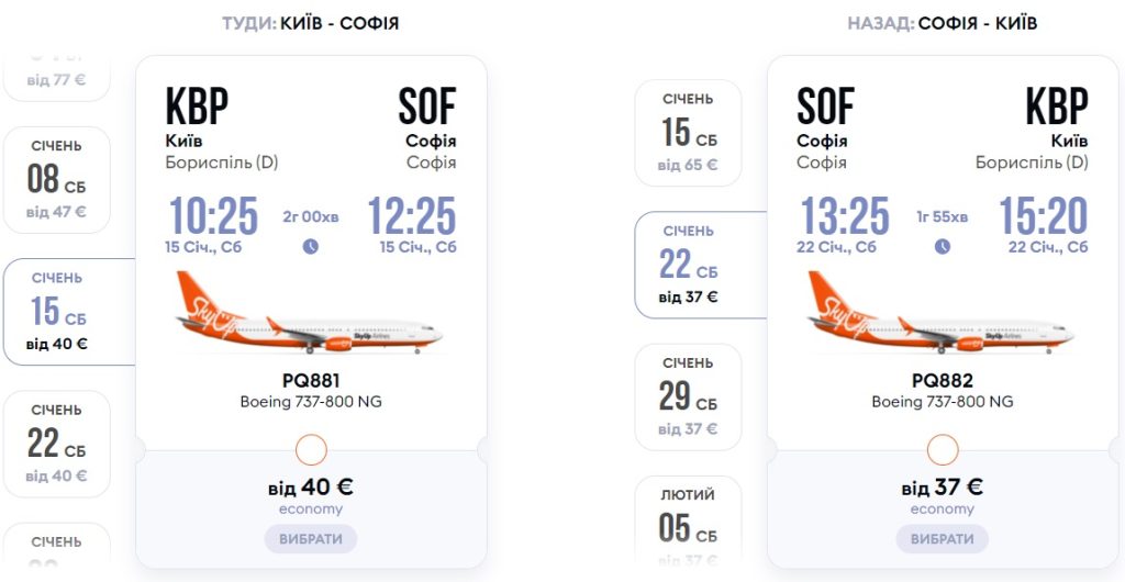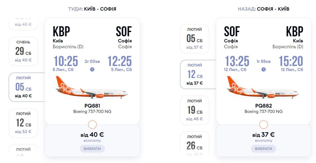 Київ – Софія – Київ (05.02.2022 – 12.02.2022) – €77