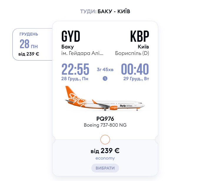 Баку — Київ: 28.12.2020. Ціни – від €239.