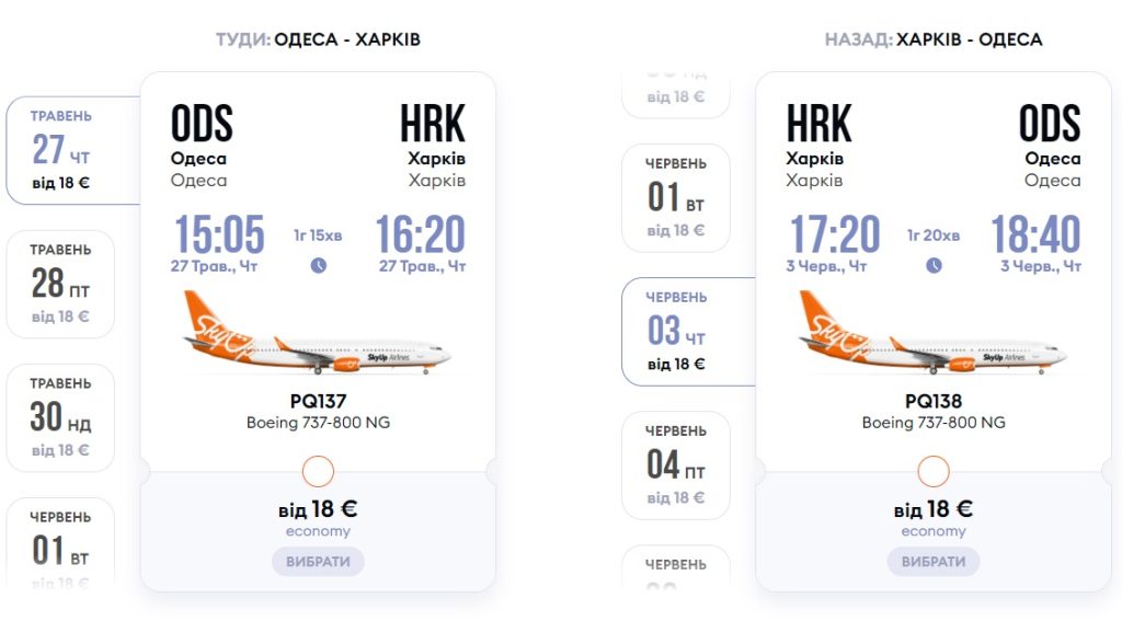 Одеса – Харків – Одеса: з 27 травня по вівторках, четвергах, п’ятницях і неділях.