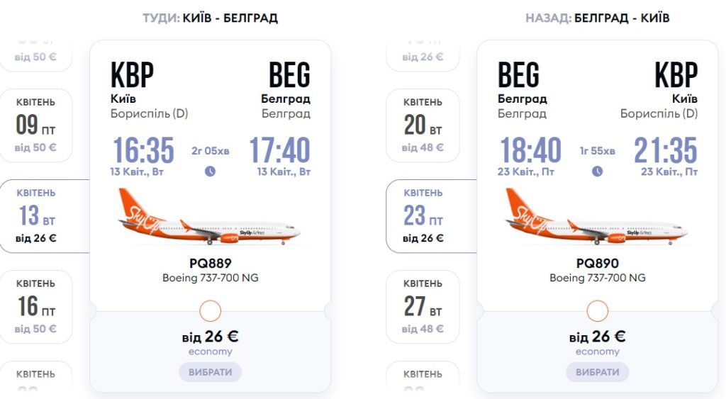 Рейси до Сербії заплановано з 30 березня 2021. Літатимуть за маршрутом Київ – Белград – Київ двічі на тиждень: по вівторках і п’ятницях. Вартість перельотів – від €26 в одну сторону або €52 туди-назад.