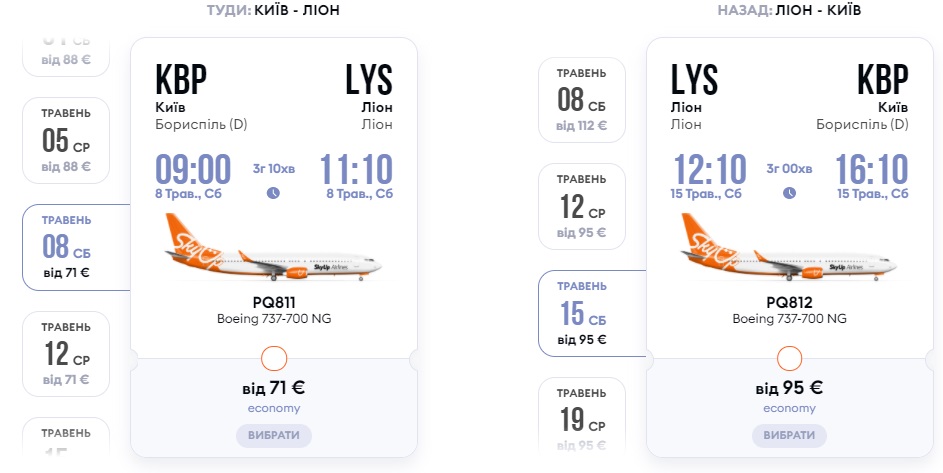 Рейси у французьке місто Ліон планують запустити з 28 квітня 2021-го з частотою 2 рейси на тиждень – по середах та суботах. Вартість квитків – €88 в одну сторону або €166 туди-назад.