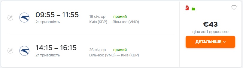 Київ – Вільнюс – Київ (19.01.2022 – 26.01.2022) – €43