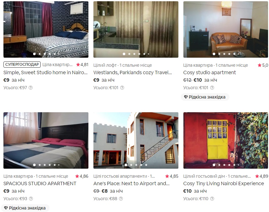 Приклади бронювання житла в Найробі на період 06.04.2020 — 15.04.2020, 9 ночей: