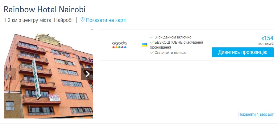Для комфортнішого проживання – Rainbow Hotel Nairobi – від €154 за двомісний номер.