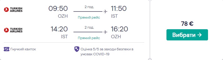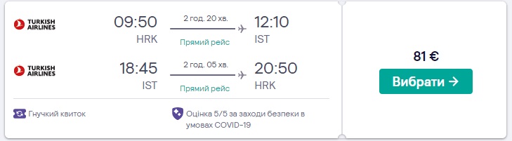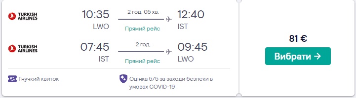Замовляти квитки потрібно на сайті Turkish Airlines або скористатись сервісами Kiwi.com чи Skyscanner.com.