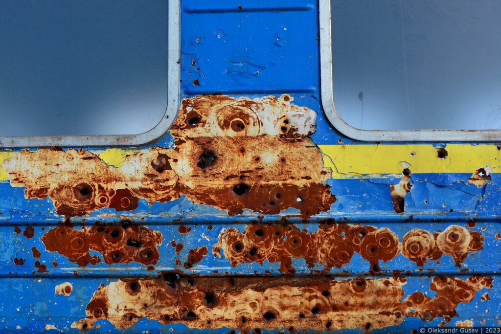 У цьому вагоні евакуювали мешканців Ірпеня до столиці навесні минулого року, але його обстріляли російські військові під час окупації Київської області у березні 2022 року.