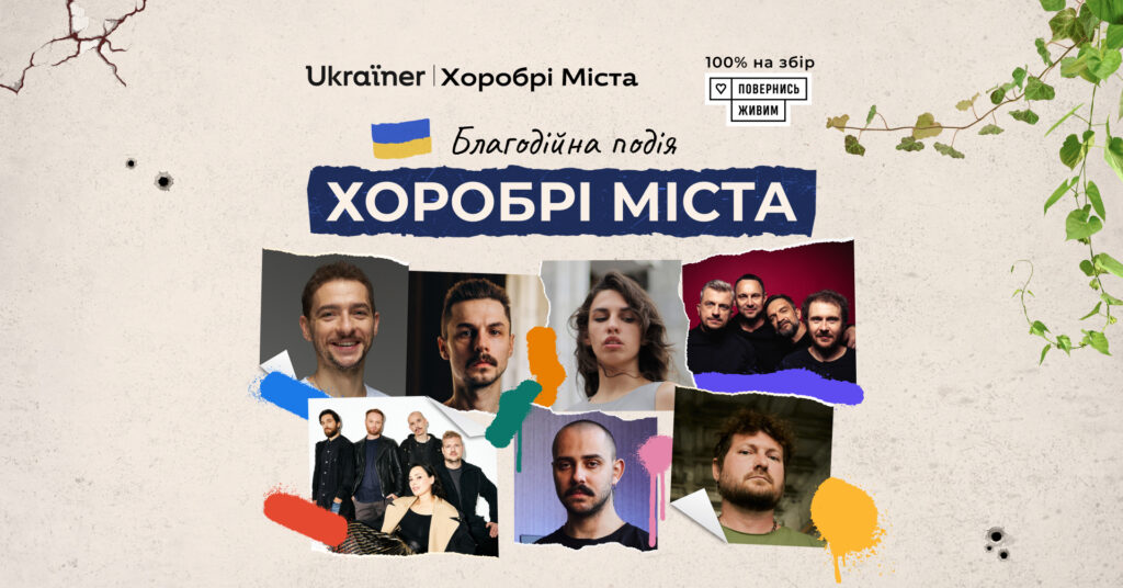 8 жовтня команда Ukraїner проведе велику благодійну подію “Хоробрі міста” за участі відомих музикантів, які заспівають свої пісні про тимчасово окуповані українські міста.
