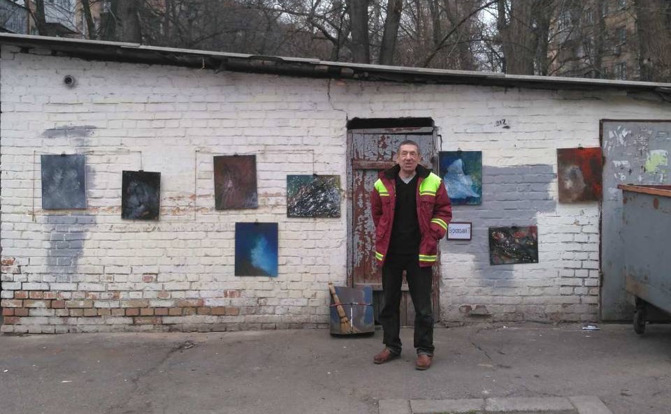 Художник-аматор захоплюється малюванням вже понад 20 років. Пише абстракції чоловік після робочого дня у комунальній службі Києва. Після перегляду фільму про Бенксі він надихнувся взятись за власну виставку і зробив це просто неба біля свого будинку. Як висновок, людям дуже сподобався його вернісаж.