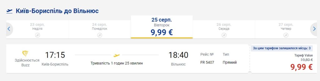 Київ-Вільнюс (25.08.2020) – €10
