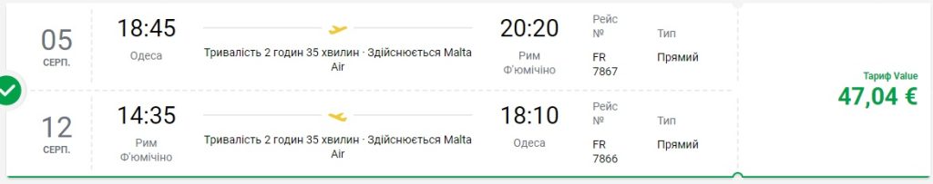 Одеса-Рим-Одеса (05.08.2020 – 12.08.2020) – €47