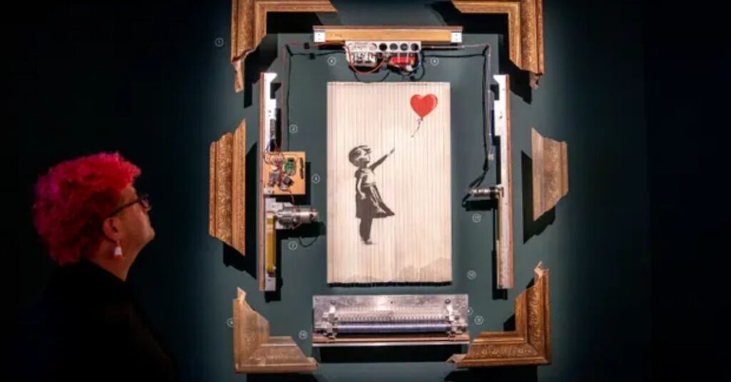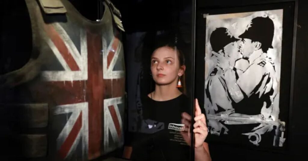 Крім того, є детальна модель, яка пояснює, як Бенксі подрібнив свою картину “Дівчина з повітряною кулькою”. Робота самознищилася через кілька секунд після того, як була продана на аукціоні Sotheby’s за 1 мільйон фунтів стерлінгів у 2018 році.