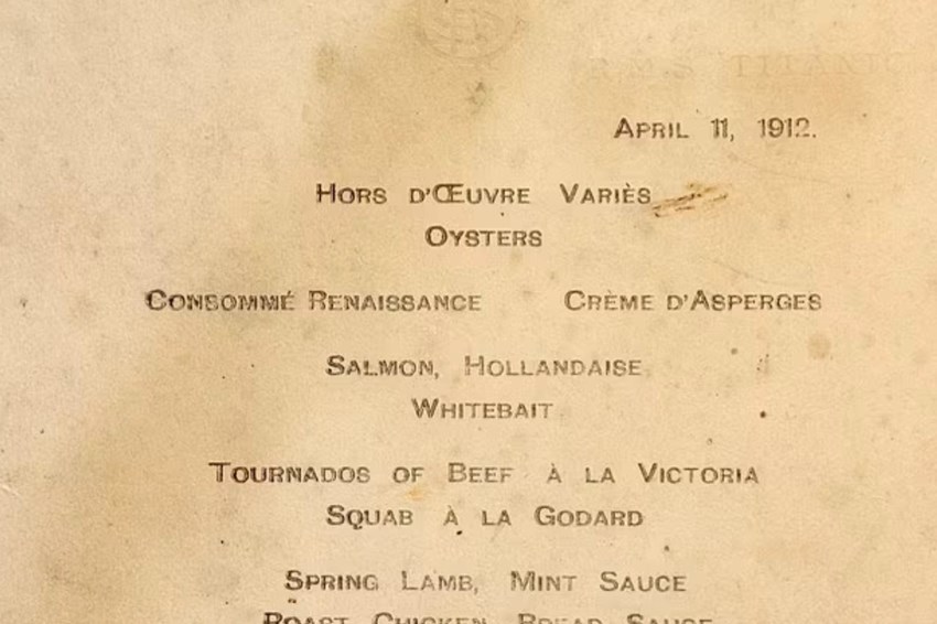 У меню описуються страви, що подавались в ресторані першого класу “Титаніка” за чотири дні до того, як корабель зіштовхнувся з айсбергом – 11 квітня 1912 року. Раніше було відомо лише про декілька меню з лайнера за 14 квітня, які виявили в одязі людей, яких рятували з корабля.