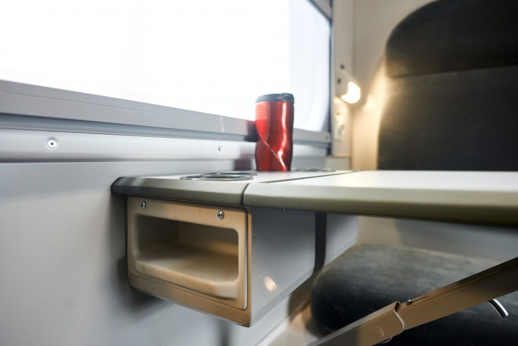 Також, біля кожного місця встановлять USB розетки, під столиками встановлені спеціальні полички для зручного зарядження телефонів, купе обладнані індивідуальними системами клімат-контролю, на столиках спеціальні місця для склянок та багато іншого.