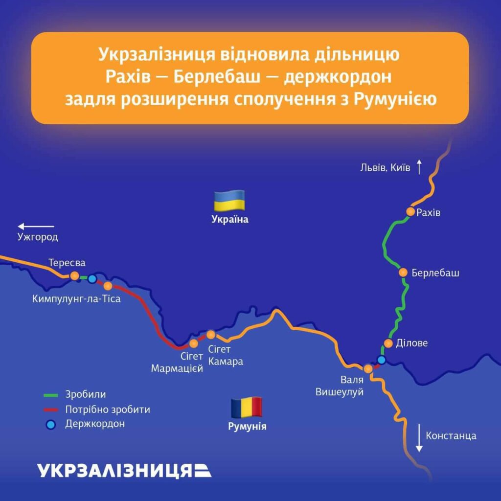 На кордоні з Румунією відкрили одразу дві залізничні дільниці: Рахів – Барлебаш – держкордон та Тересва – держкордон.
