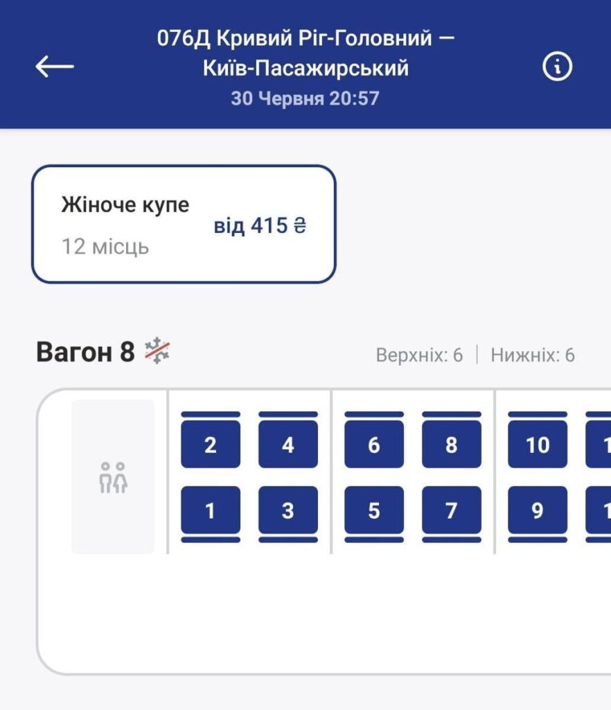 Продаж квитків для жіночих купе наразі відбуватиметься виключно у мобільному застосунку, пише пресслужба “УЗ”.