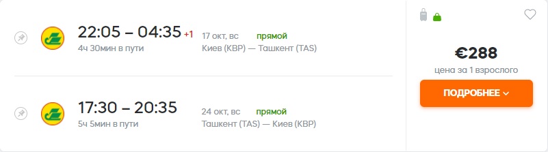 Київ – Ташкент – Київ (17.10.2021 – 24.10.2021) – €288