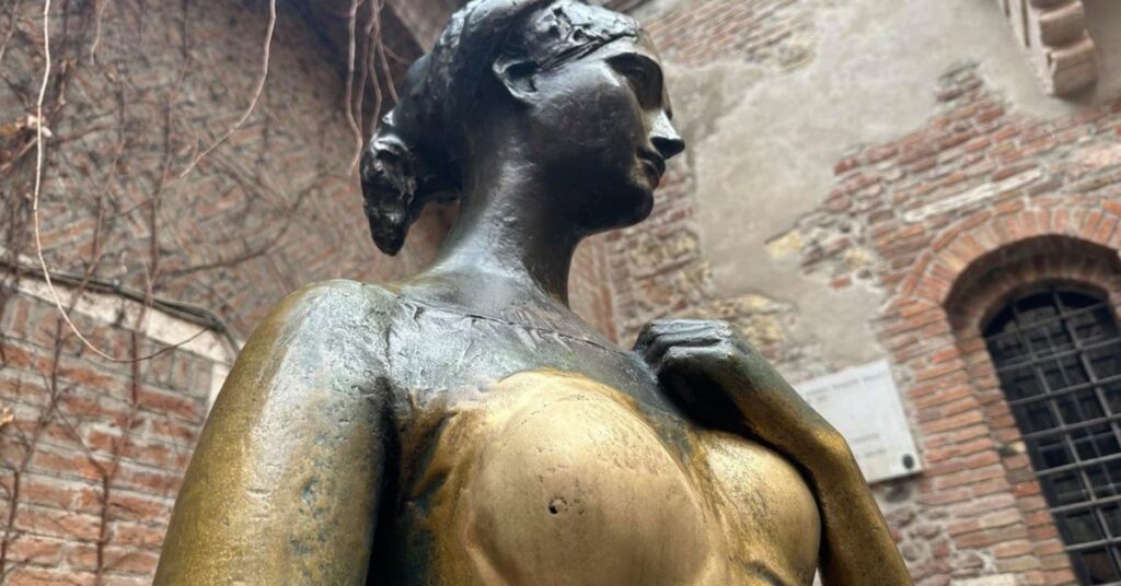 Бронзова статуя розташована під балконом у маленькому дворику Верони, де, за легендою, Ромео залицявся до Джульєтти. Щоденно сюди приходять сотні туристів за селфі та доторкнутись до грудей статуї, що, як вони вірять, приносить удачу в коханні.