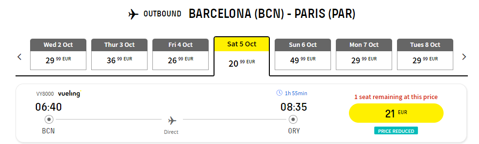 Барселона – Париж (05.10.2024) – €21