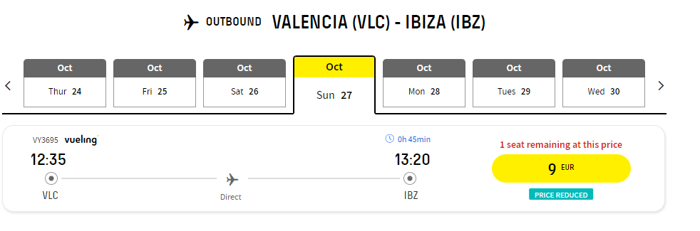 Валенсія – Ібіца (27.10.2024) – €9