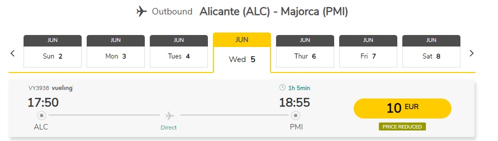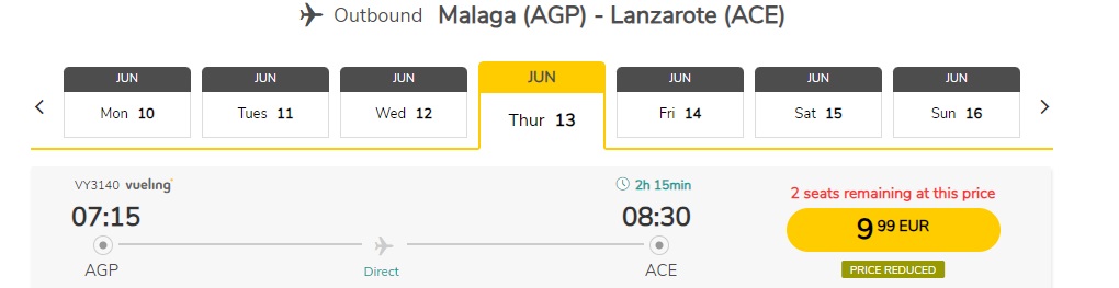 Акційна ціна діє на внутрішні рейси по Іспанії з Барселони, Мадриду, Аліканте, Малаги, Більбао, Ібіци, Майорки та інших іспанських міст. Вартість квитків — від €10 в одну сторону.